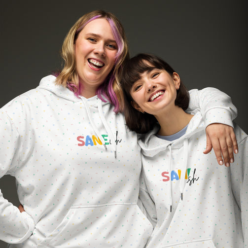 This design is a celebration of the beautifully imperfect journey that is mental health. It playfully balances the boldness of "SANE" with the lighthearted twist of "ish" — reminding us that it's okay to not always have it all together; we're all just doing our best to deal with the cards life has dealt us.