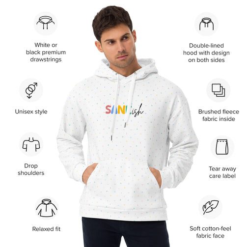 This comfy unisex hoodie has a soft outside with a vibrant print and an even softer brushed fleece inside. The hoodie has a relaxed fit, and it's perfect for wrapping yourself into on a chilly evening.